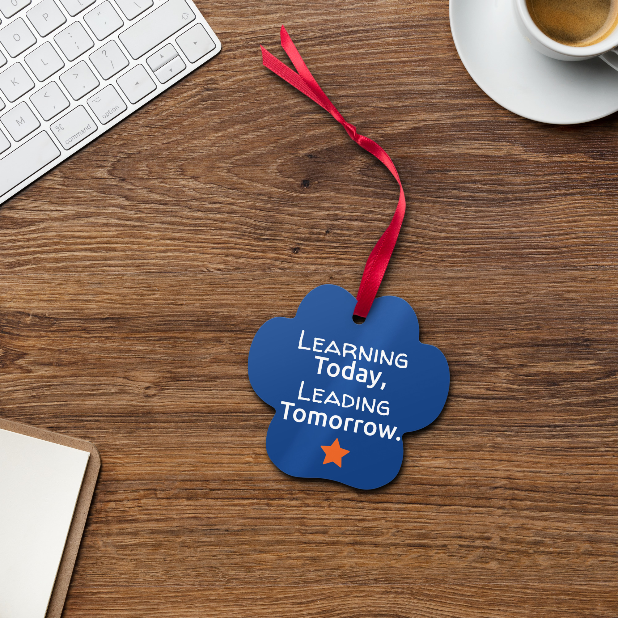 • Comes with a red ribbon and a hole to thread it through