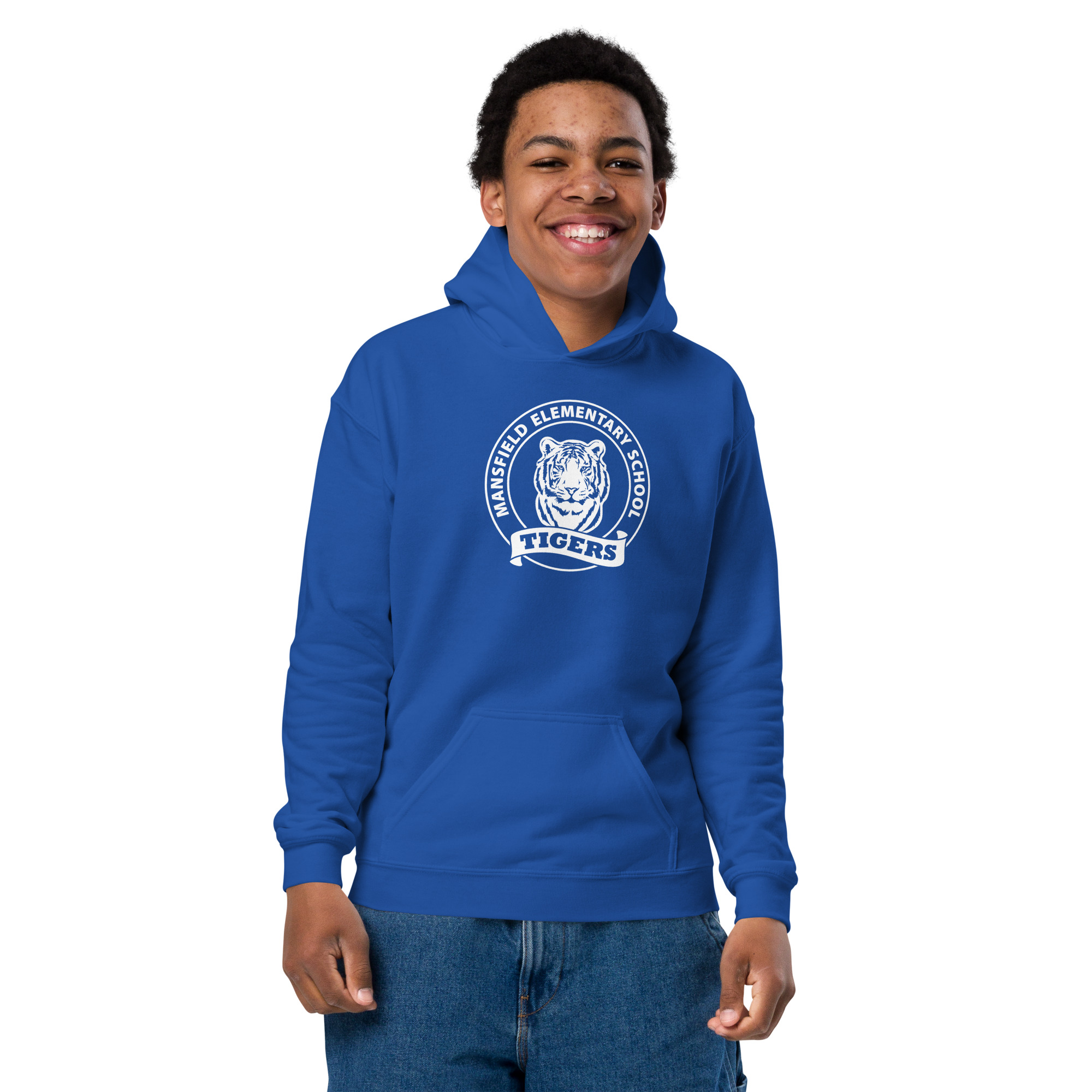 Soft fleece youth hoodie.